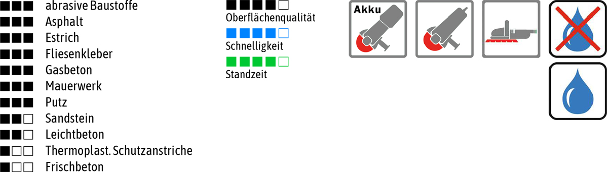 - geeignet für Asphalt, Estrich, Putz, abrasive Betonerzeugnisse