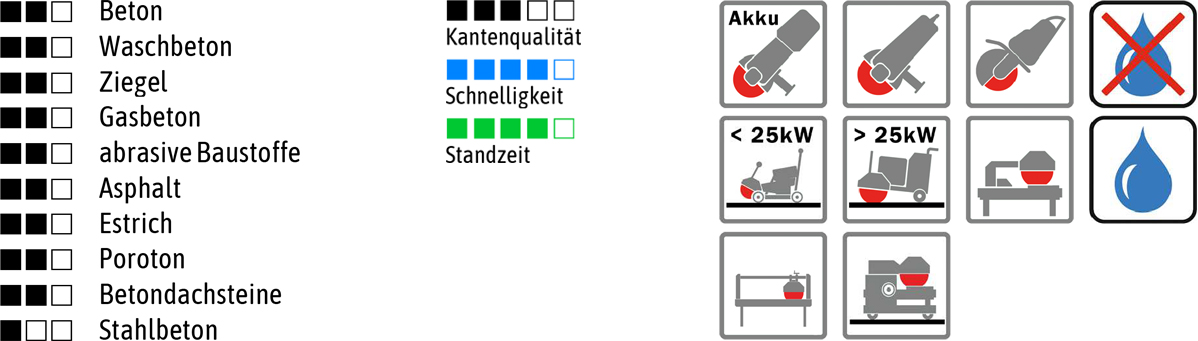 - hochwertiger Diamantsegmentbelag ermöglicht gute Standzeitresultate