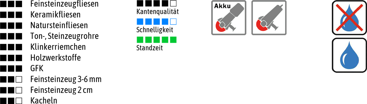 - problemloses Bohren – auch in härtesten Materialien wie Feinsteinzeug