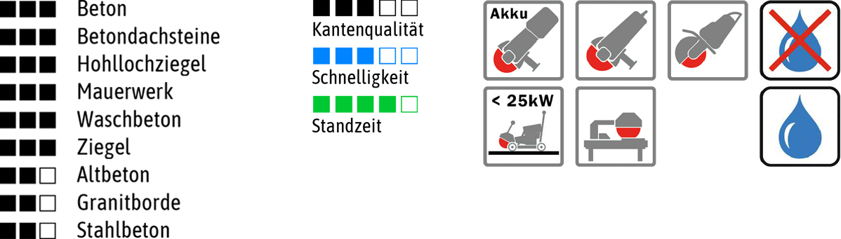 • hoher Diamantsegmentbelag ermöglicht gute Standzeitresultate